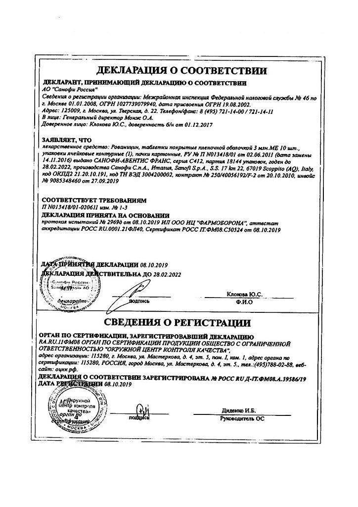 Нельзя назначать Ровамицин совместно с препаратами, которые могут вызвать мерцание или трепетание желудочков.