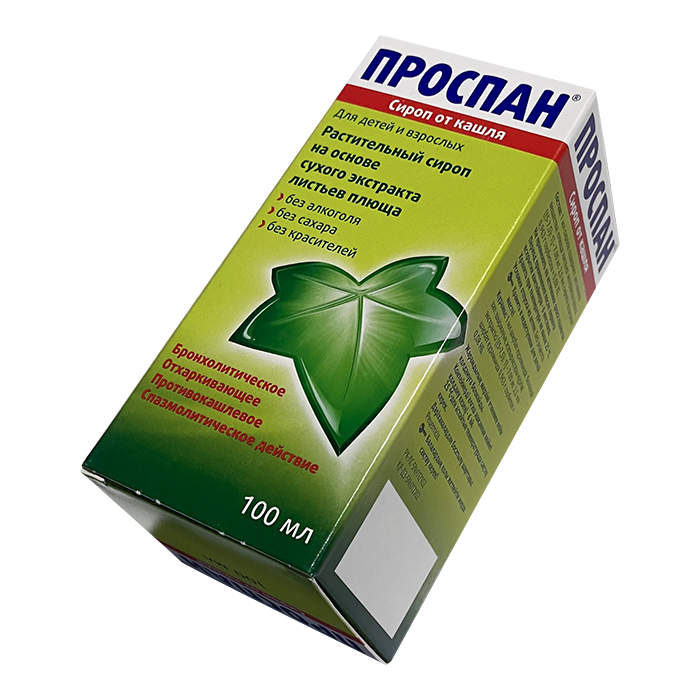 Проспан - это эффективный сироп от кашля, который используется для лечения различных видов кашля. Он производится из натуральных экстрактов листьев плюща, которые известны своими противокашлевыми и муколитическими свойствами.