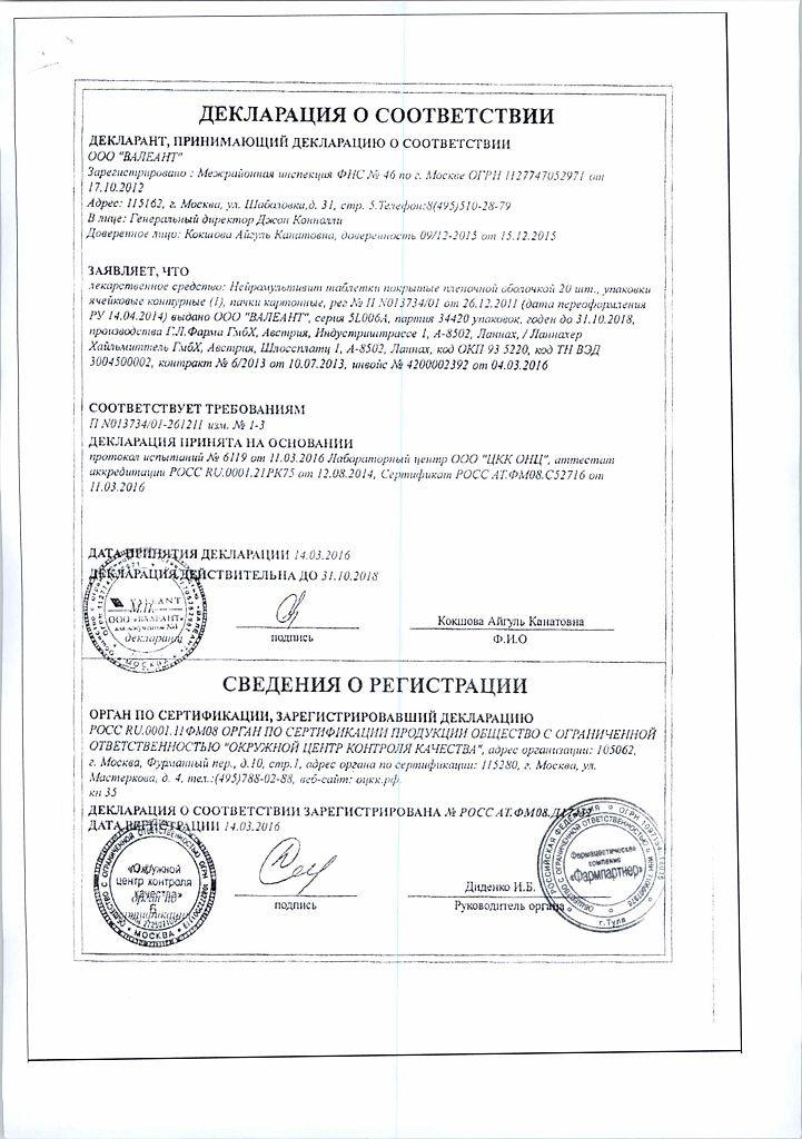 Применение. Нейромультивит применяют внутрь по 1 таблетке 1-3 раза в день после еды, запивая не очень большим количеством воды. Длительность лечения определяется врачом и в среднем составляет 1-1.5 месяца.