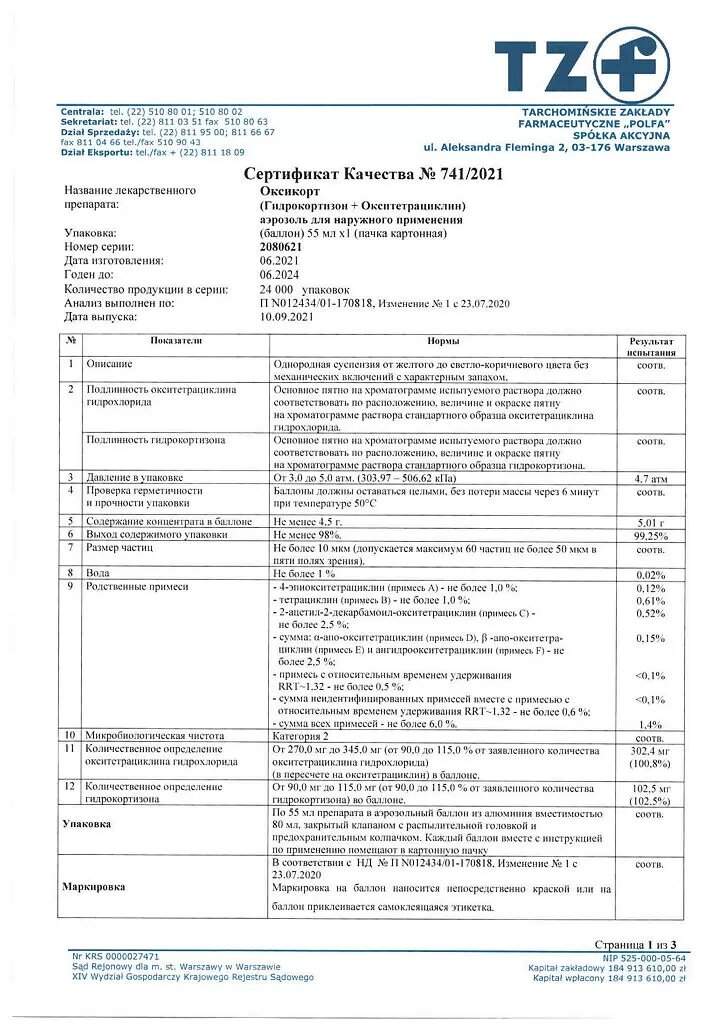 Срок годности препарата Оксикорт
