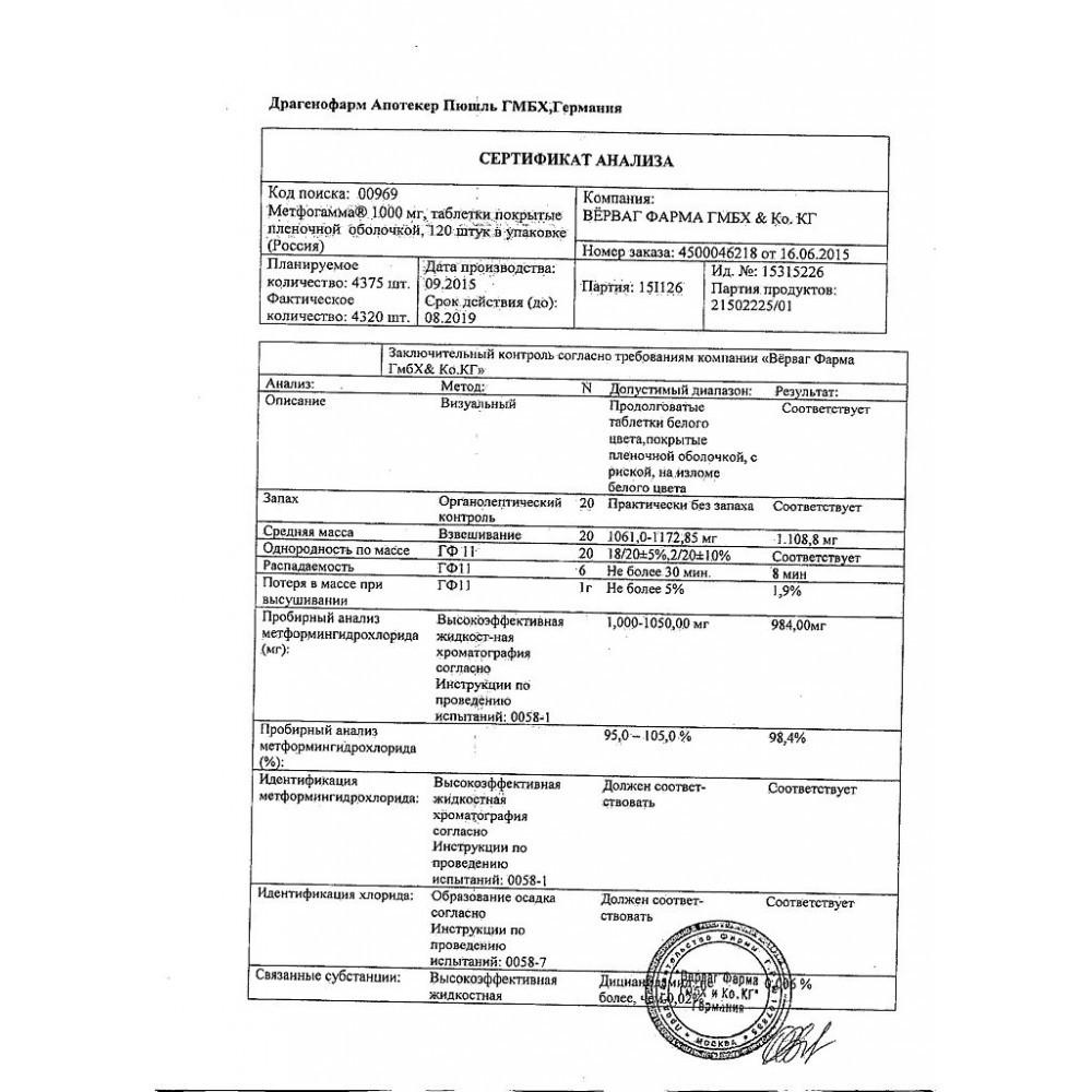 Сертификаты Метфогамма