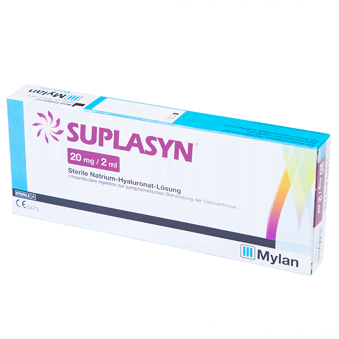 Применение. Дозировка препарата зависит от размера сустава (2-6 мл). Стандартно вводят 2 мл Суплазина в сустав в течение трех недель, по одной инъекции в неделю. Если речь идет о хронических процессах, то длительность лечения может составлять до полутора месяцев. Препарат вводят в асептических условиях. Допускается одновременное лечение Суплазином нескольких суставов.