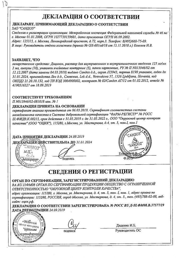 Гемостатическое средство, оказывает также ангиопротекторное и проагрегантное действие. Стимулирует образование тромбоцитов и их выход из костного мозга. Гемостатическому действию, обусловленному активацией формирования тромбопластина в месте повреждения мелких сосудов и снижением образования в эндотелии сосудов простациклина PgI2, способствует повышению адгезии и агрегации тромбоцитов, что, в конечном счете, приводит к остановке или уменьшению кровоточивости. Увеличивает скорость образования первичного тромба и усиливает его ретракцию, практически не влияет на концентрацию фибриногена и протромбиновое время. Дозы более 2-10 мг/кг не приводят к большей выраженности эффекта. При повторных введениях тромбообразование усиливается. Обладая антигиалуронидазной активностью и стабилизируя аскорбиновую кислоту, препятствует разрушению и способствует образованию в стенке капилляров мукополисахаридов с большой молекулярной массой, повышает резистентность капилляров, снижает их хрупкость, нормализует проницаемость при патологических процессах. Уменьшает выход жидкости и диапедез форменных элементов крови из сосудистого русла, улучшает микроциркуляцию. Не оказывает сосудосуживающего действия. Восстанавливает патологически измененное время кровотечения.