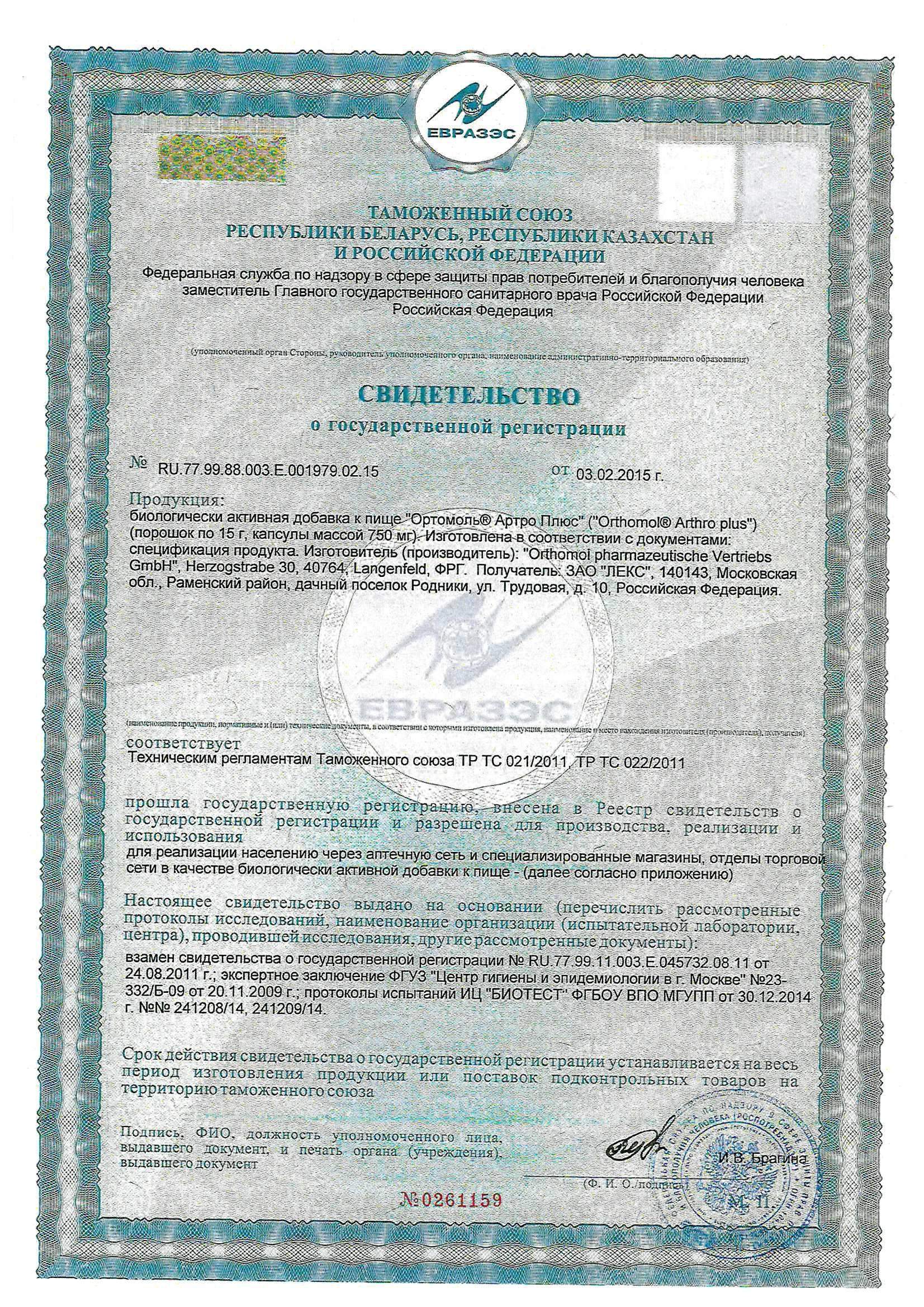 Применение. Растворить содержимое 1 пакетика с порошком Orthomol Arthro plus в 150-200 мл воды или фруктового сока и принимать вместе с двумя капсулами (Омега 3) во время или после еды 1 раз в день. Одна упаковка рассчитана на прием в течение одного месяца. Рекомендуемый курс приема – три месяца.